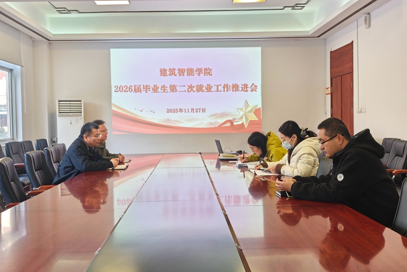 11月27日,建筑智能学院召开2026届毕业生就业工作第二次推进会。党总支书记余涛主持会议,党总支副书记杨海波及23级班主任参加会议。
