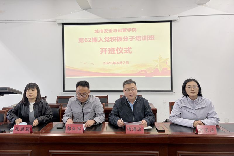 4月7日下午,城市安全与运营学院在党校教室举办第62期入党积极分子培训班开班仪式。学院主持工作副院长郭红军、党总支副书记杨海波、副院长张丽娟、学生科科长分团委书记赵家瑶出席开班仪式。郭红军做开班动员讲话,杨海波主持开班仪式。